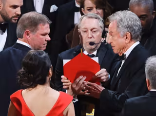 Y de hecho vivió su gran noche... pero solo durante unos instantes. Los míticos actores Warren Beatty y Faye Dunaway , protagonistas de la legendaria Bonnie and Clyde, fueron los encargados de entregar el premio final de la noche, el de mejor película, y los protagonistas de un error que pasará a la historia de los Oscar.