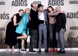 (i-d) Mona Martínez; Natalia de Molina; el director de la película, Paco Cabezas; Mario Casas; Ruth Díaz; y Vicente Romero, posan juntos en el photocall de la película Adiós, en Madrid, a 15 de noviembre de 2019. - Eduardo Parra - Europa Press