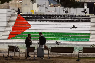 Un mural apoyando la causa Palestina pintado en unas escaleras, a 13 de febrero de 2026, en Barcelona, Catalunya (España). En Barcelona se han multiplicado los murales y piezas de arte urbano en apoyo a Palestina, repartidos por varios barrios y con fuert - Alberto Paredes - Europa Press