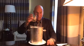 Después de firmar el cheque, el actor coge un cubo de hielo y vez de tirárselo por la cabeza, lo utiliza para lo que realmente está pensado: disfrutar de un vaso de Whisky.