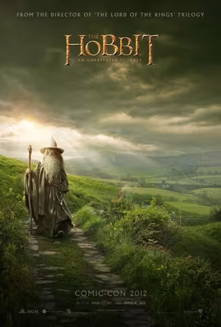 De la misma manera en la que anunció Jackson el fin del rodaje, nos muestra, en su página oficial de facebook, el primer cartel de la precuela de la trilogía 'El Señor de los Anillos' en que el mago Gandalf (Sir Ian Mckellan) se adentra por un camino hacia una misión. En compañía del mago y trece enanos, Bilbo Bolsón (Martin Freeman)emprende un viaje a través del país de los elfos y los bosques de trolls para finalmente encontrar el Anillo Único en las profundidades de la Tierra.