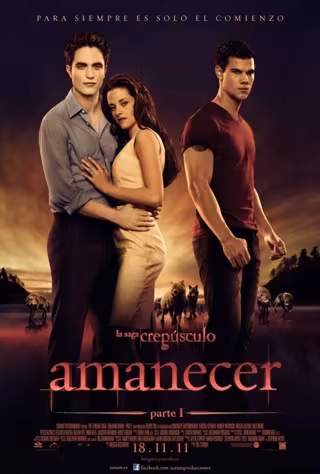 Los tres de siempre y una manada de lobos furiosos enseñando los dientes. Esto es lo que nos trae el nuevo cartel promocional en español de Amanecer, la primera de las dos entregas que pondrán punto y final a la Saga Crepúsculo.