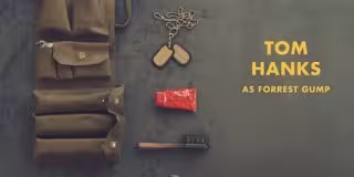 Así, con los nombres de Tom Hanks (Gump), Robin Wright Penn (Janny), Mykelti Williamson (Bubba) o Gary Sinise (el teniente Dan), van apareciendo las palas de pin-pon, los enseres de Forres durante su paso por el ejército y, por supuesto, la mítica caja de bombones.