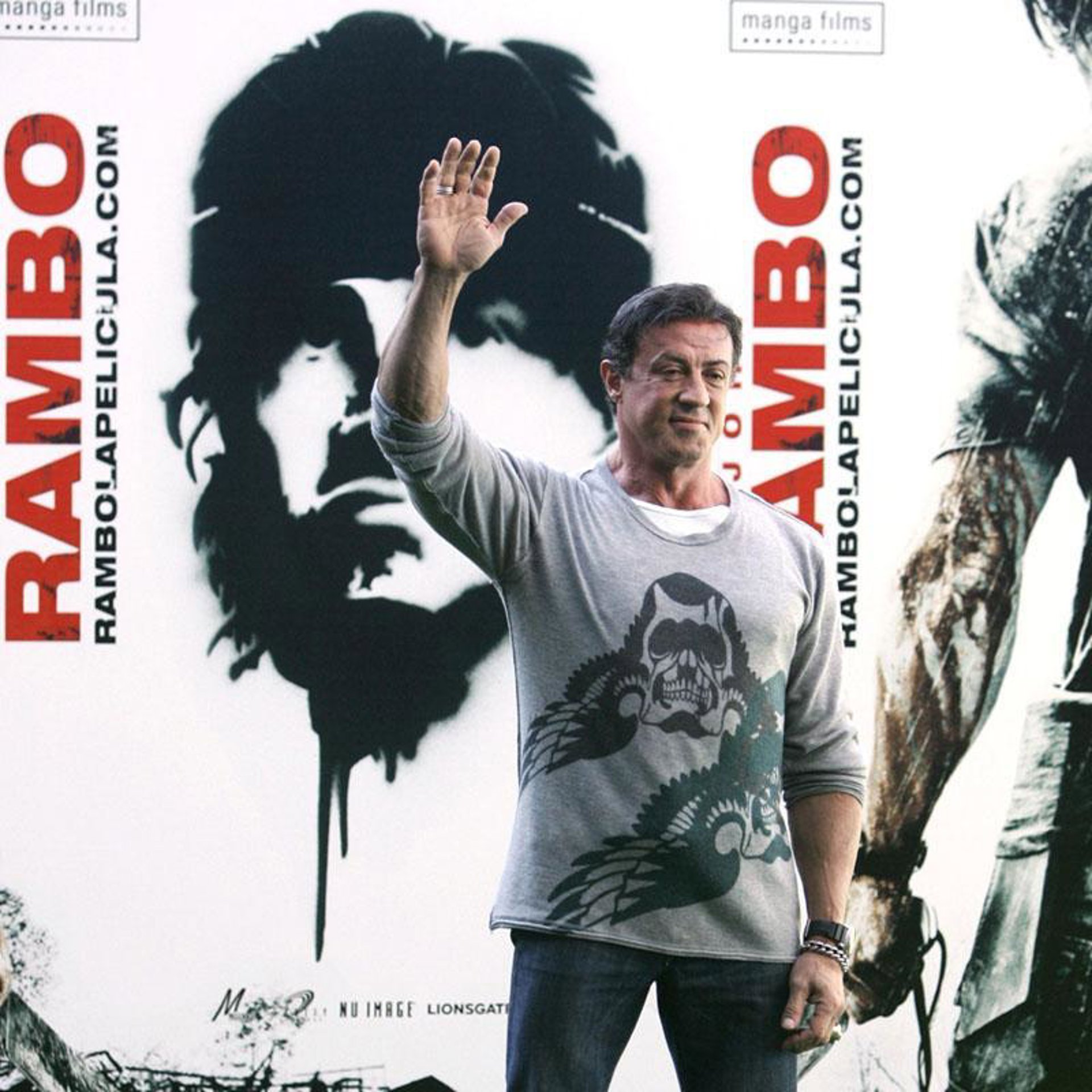 En un acto celebrado en el estadio Santiago Bernabeu, el norteamericano explicó su visión teológica del film, según la cual Rambo representa el purgatorio y los misioneros son ángeles. "El mundo es violento", lo que explica que "cuando acaba una guerra comienza otra". "Las personas mayores deciden empezar los conflictos pero son los jóvenes los que van a luchar. ¿Puede Dios arreglar todo esto? Sinceramente, no lo sé", dijo.