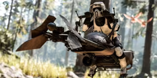 El trooper en cuestión está montado encima de un vehículo que bien podría convertirse -CGI mediante- en una de esas motos speeder imperiales en las que apareció en la trilogía original, si bien es cierto que -a primera vista- guarda bastantes similitudes con el más robusto speeder que pilotaba Rey al inicio de El despertar de la Fuerza.
