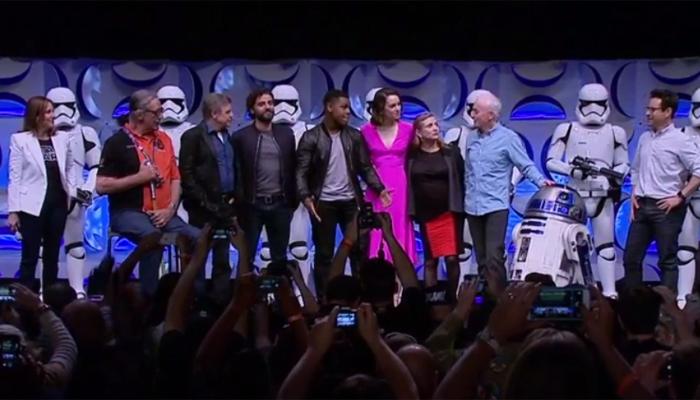 El evento arrancó con los actuales mandamás de la saga en el escenario, el director del Episodio VII J.J. Abrams, que arrancó varias ovaciones de los allí presentes al hablar de lo que significa para él trabajar en la saga de la que es fan desde niño, y la presidenta de Lucasfilm y la productora Kathleen Kennedy. Ambos prometieron contentar "a todos" los seguidores de la saga con la nueva entrega. ¿Cumplirán su palabra?