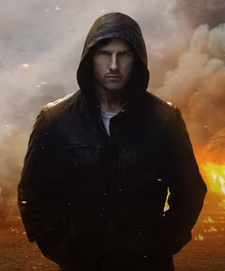 En esta nueva imagen promocional podemos ver Ethan Hunt encapuchado y con un rictus imperturbable teniendo en cuenta la tremenda explosión que se está produciendo a su espalda.