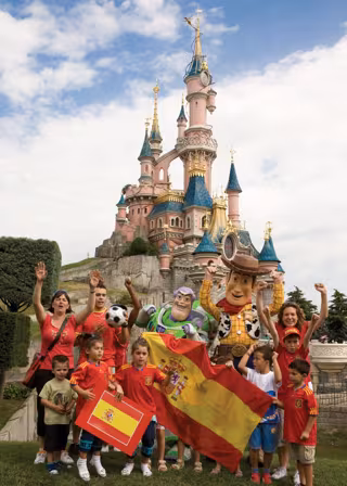Desde todos los puntos del mundo, la afición española vive con entusiasmo las últimas horas antes de la gran final. También en Disneyland Paris, Buzz y Woody -que llegaran a las pantallas españolas el 21 de julio con el estreno de Toy Story 3-, animan a La Roja.