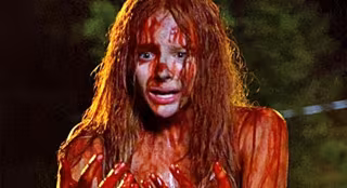 Mientras voces en off se hacen preguntas sobre la naturaleza del fenómeno ante el que nos encontramos vamos avanzando hacia una sombra que se distingue entre el fuego y los escombros que pueblan la calles. Ella es Carrie White, la niña inadaptada que se ha convertido en un monstruo, y que aparece totalmente ensangrentada.
