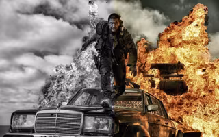 Mad Max: furia en la carretera, dirigida por George Miller con guión de Nick Lathouris, Brendan McCarthy y el propio George Miller, está protagonizada por Tom Hardy, Charlize Theron, Nicholas Hoult, Hugh Keays-Byrne, Angus Sampson, Zoë Kravitz, Rosie Huntington-Whiteley, Nathan Jones y Riley Keough. La película está ambientada en un futuro después de una guerra nuclear, donde el mundo es un páramo desértico y la civilización se ha derrumbado.