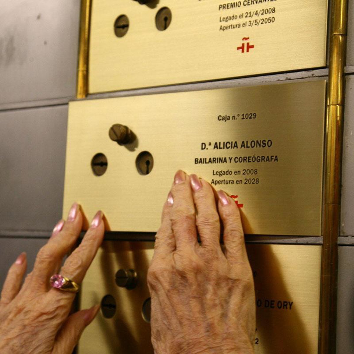 Alonso, acompañada de su marido, depositó su legado personal en la caja de seguridad número 1.029. "Me hace mucha ilusión este momento. He tenido muchos momentos preciosos en mi vida pero nunca había pensado dejar algo para que me recuerden", confesó emocionada la bailarina y coreógrafa. El contenido del legado es secreto pero Alonso reconoció que se trata de algo muy especial que "ha significado mucho en mi vida".