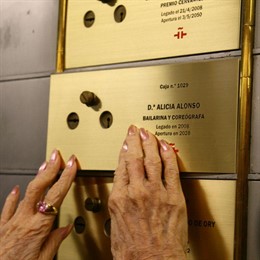 La bailarina cubana Alicia Alonso, fundadora del Ballet Nacional de Cuba y una de las grandes figuras de la danza clásica en el siglo XX, depositó hoy en la 'Caja de las Letras' del Instituto Cervantes de Madrid un legado personal que permanecerá guardado bajo llave durante 20 años en la antigua cámara acorazada del edificio que alberga la sede central del Cervantes, dedicada en la actualidad a conservar la memoria cultural de España e Hispanoamérica.