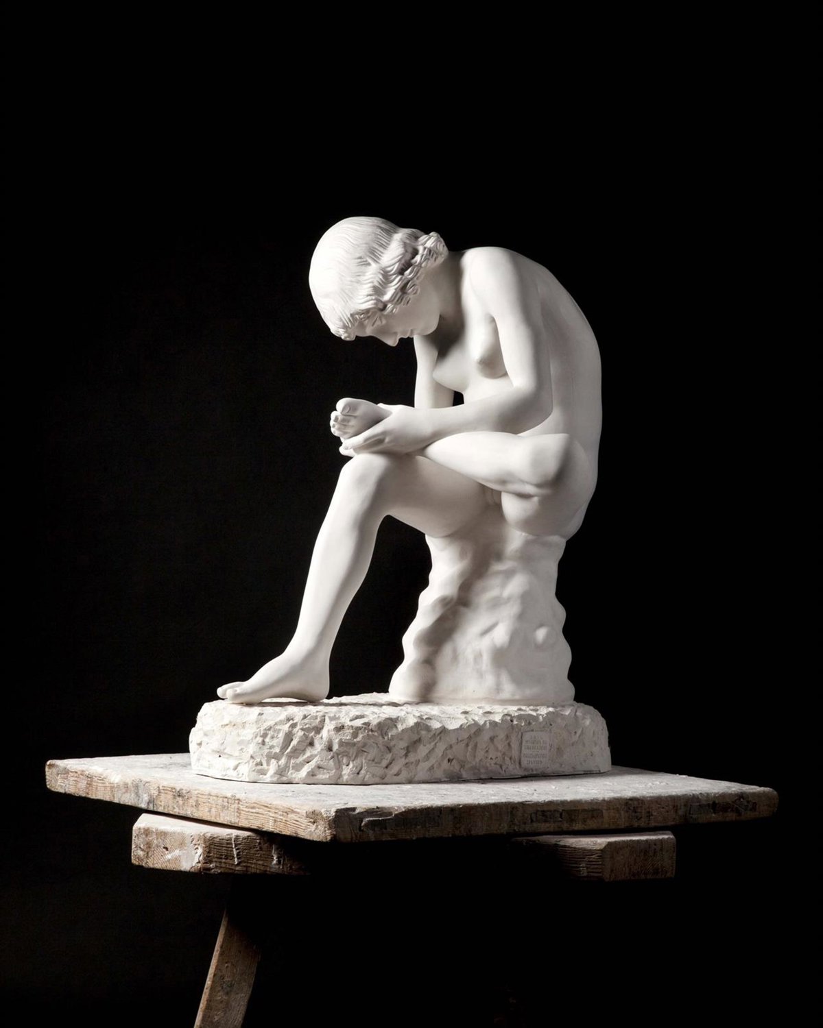 'La niña de la espina' (2016), de Mateo Maté, es una de las intervenciones expuestas. Se trata de una escultura realizada con la técnica de vaciado de escayola que se instalará en la Sala Austrias, en el ámbito de Felipe II. Reinterpreta, transformándolo en mujer, el célebre Espinario de Guglielmo della Porta. Aunque en un primer vistazo parece una réplica clásica, la obra subvierte el canon tradicional para abordar cuestiones de género, sexualidad y diversidad. A través de la repetición y la copia, el artista reinterpreta los ideales normativos y propone una ruptura radical.