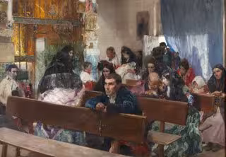 'El Bautizo' se expone en la Fundación Pons (Serrano, 138) y está acompañado por otros grandes lienzos de artistas de la época, como Ramón Casas, Joaquín Mir, Santiago Rusiñol o José Gutiérrez Solana que también se subastarán en Londres.