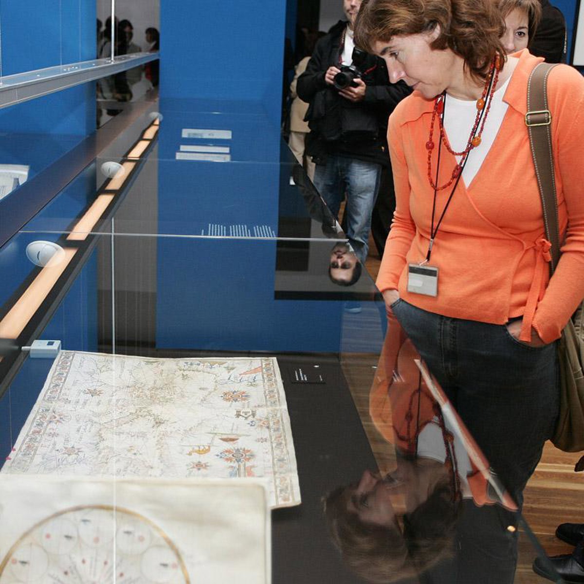 El recorrido de la muestra se hace atendiendo a siete apartados que proponen reflejar la actividad del ser humano como creador de obras de arte, cultura, ciencia y técnica. La primera sección es la dedicada al autor y la transmisión de la obra; el segundo se refiere al paso del concepto imaginado al práctico; el mundo de los mapas y la cartografía ocupa la tercera estancia; el desarrollo científico y técnico en la cuarta; la filosofía y política ocupa la quinta sección; la palabra en el tiempo en la sexta; y, por último, la cultura, público y sociedad.