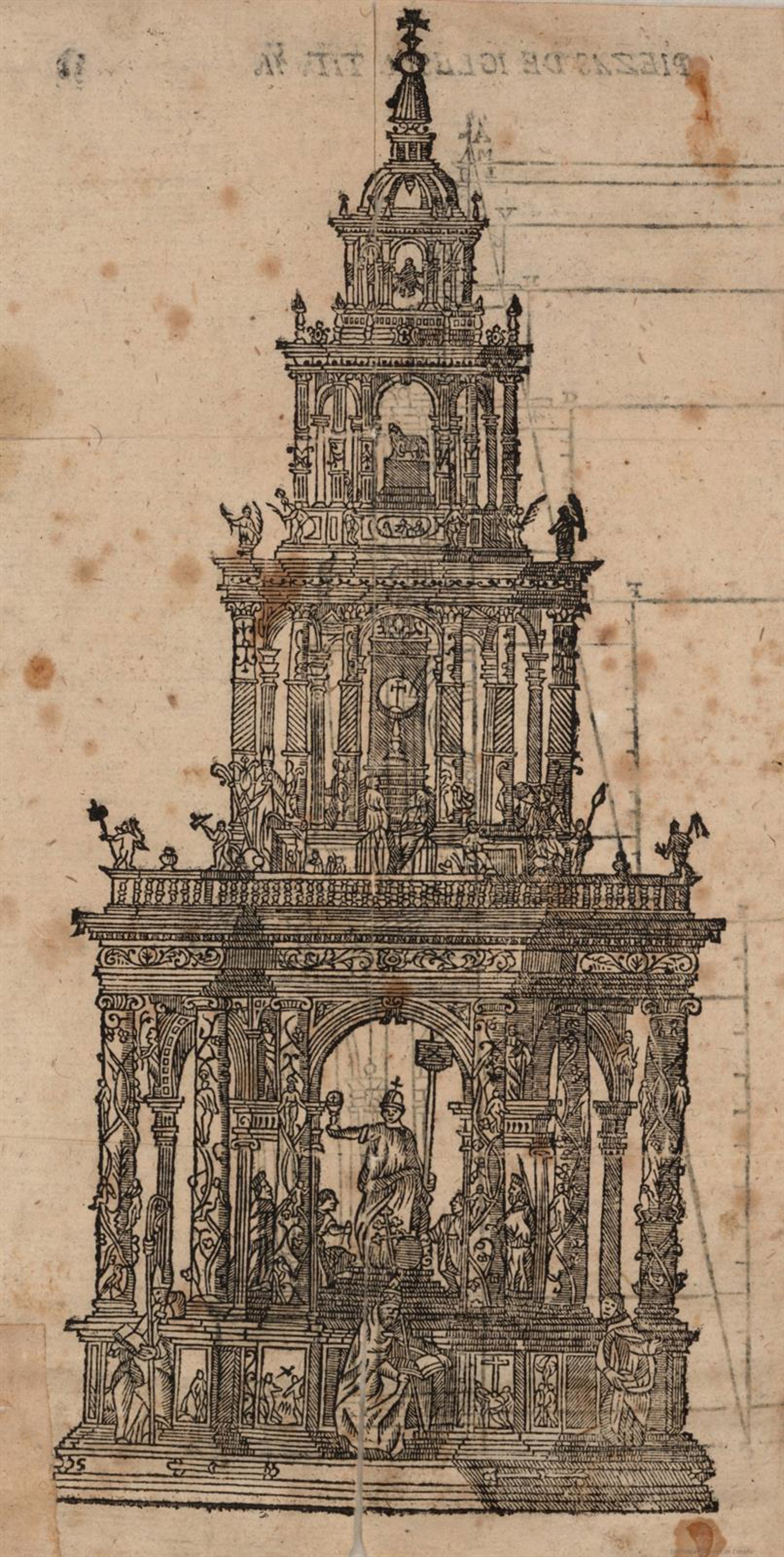 Además, Ceán añadió otros dos provenientes de la Varia Commesuracion, donde en un mismo folio, el recto y el verso, muestran un alzado de la custodia. Por un lado, figura un diseño esquemático con un estudio de las proporciones de sus distintas alturas y, por el otro, la obra completa, tanto en lo que corresponde a la arquitectura como a la figuración escultórica.