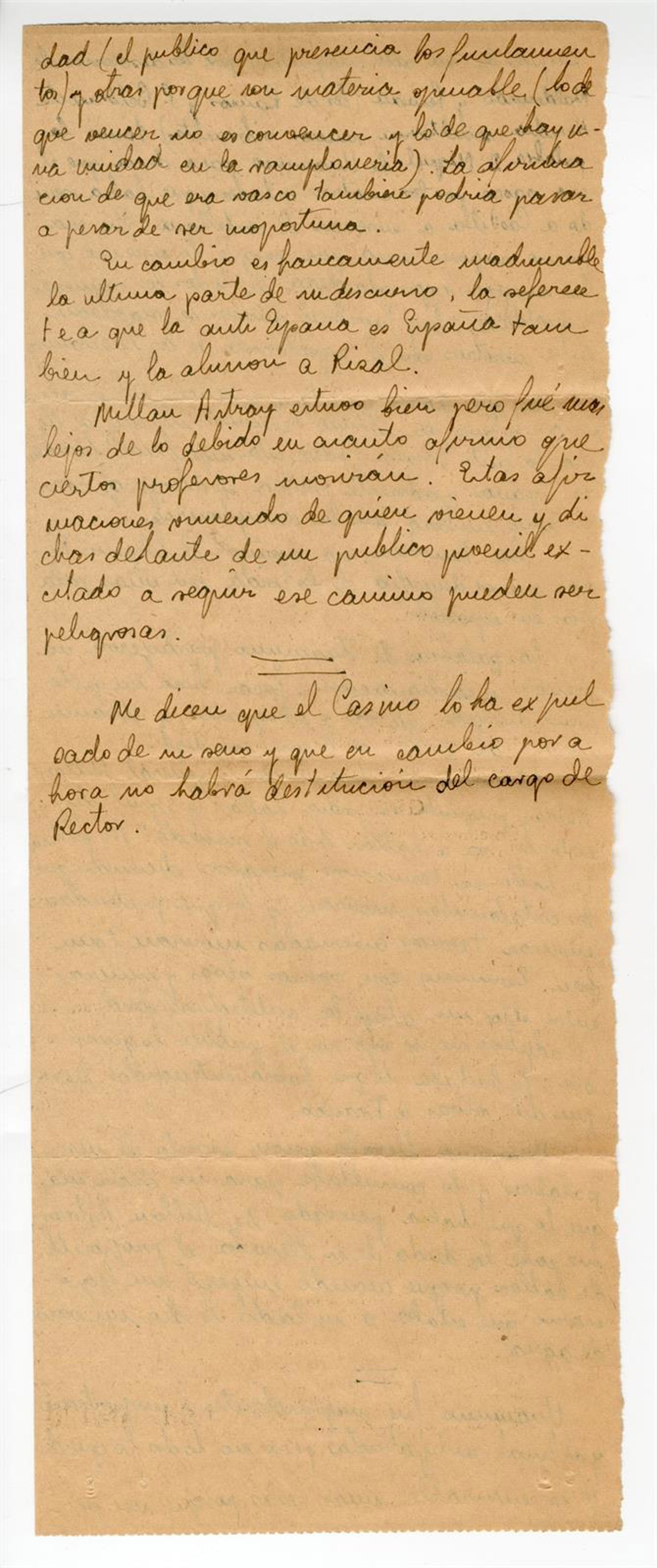 "No es un documento autógrafo de Unamuno pero lo hemos considerado muy adecuado, ya que Ignacio Serrano comenta con objetividad las palabras de ambos y sus actitudes. Con este testimonio escrito rendimos homenaje a Unamuno, un hombre que muere con dignidad, fiel a su ideas, coherente y rechazando posturas extremas independientemente del color que fueran", ha apuntado.
