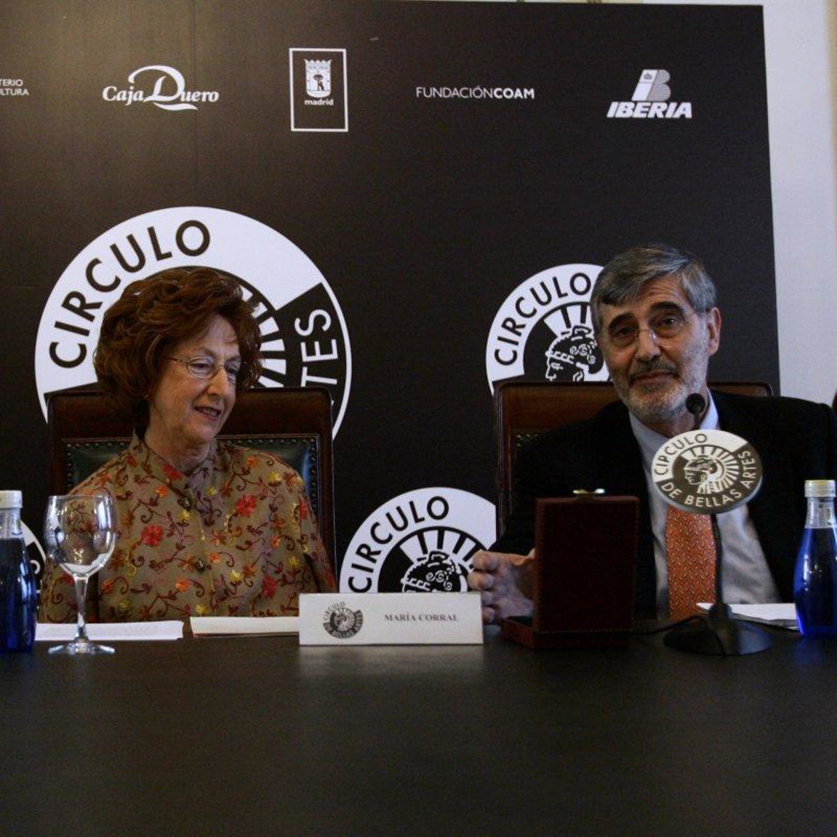 La comisaria María Corral, que fue directora de la muestra de Arte de la Fundación La Caixa y también del Museo Reina Sofía , recibió hoy la Medalla de Oro del Círculo de Bellas Artes (CBA), en un acto en el que estuvo acompañada por la presidenta de la Comunidad de Madrid, Esperanza Aguirre, y por el presidente del CBA, Juan Miguel Hernández León.