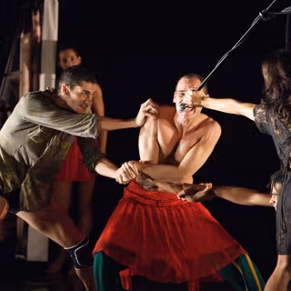 La compañía catalana Lanònima Imperial celebra sus 20 años con el estreno de 'A la nit ferida pel raig', una versión libre de la tragedida griega 'Las Bacantes', de Eurípides dirigida por Juan Carlos García que fusiona movimiento, melodía e imagen.