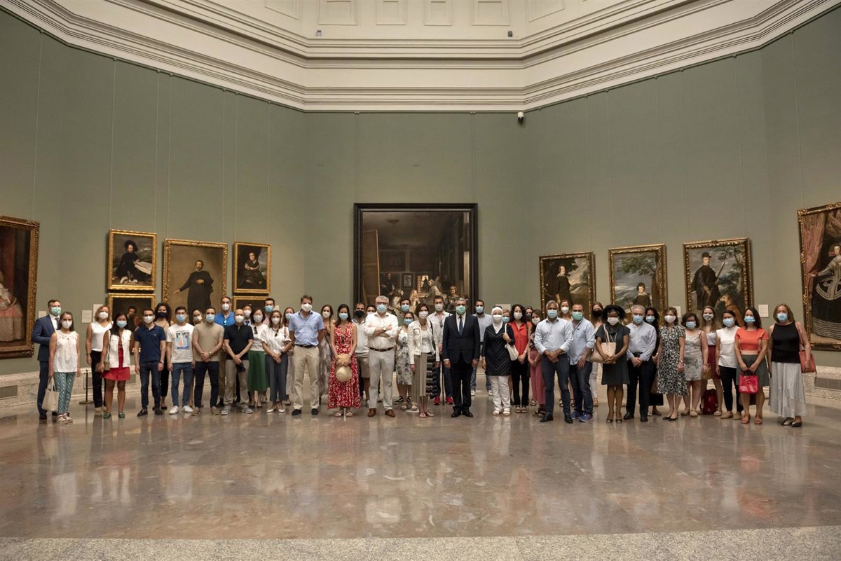 Los visitantes pudieron ver la exposición 'Reencuentro', con la que el Prado ha reabierto sus puertas, y en este vídeo se pueden ver las impresiones de un grupo de funcionarios en diferentes idiomas: español, inglés, francés, farsi, árabe, alemán, chino, coreano, japonés, armenio y georgiano.