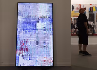 Canogar, artista que siempre ha mostrado interés por aunar el arte analógico con el digital en su obra, presenta 'Shred' --'trituradora' en español--, una pieza de 32.000 euros que introduce un algoritmo mediante el cual aparecen a tiempo real en una pantalla obras NFT que se acaban de vender y se deconstruyen y reconstruyen continuamente.
