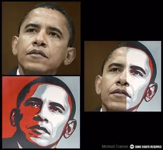 El grafitero, oriundo de Los Ángeles, se hizo famoso durante la campaña presidencial de Obama gracias a su retrato de Barack Obama modificado con el contraste al máximo y en los tres colores de la bandera estadounidense.