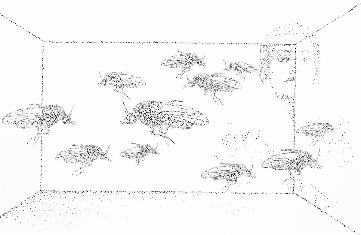 El dibujo de Sard (Mallorca, 1974) emerge del papel gracias a la perforación a base de puntas o agujas, una técnica con la que la artista refleja tres de sus temas más recurrentes: lo femenino, lo psicológico y lo mental.
