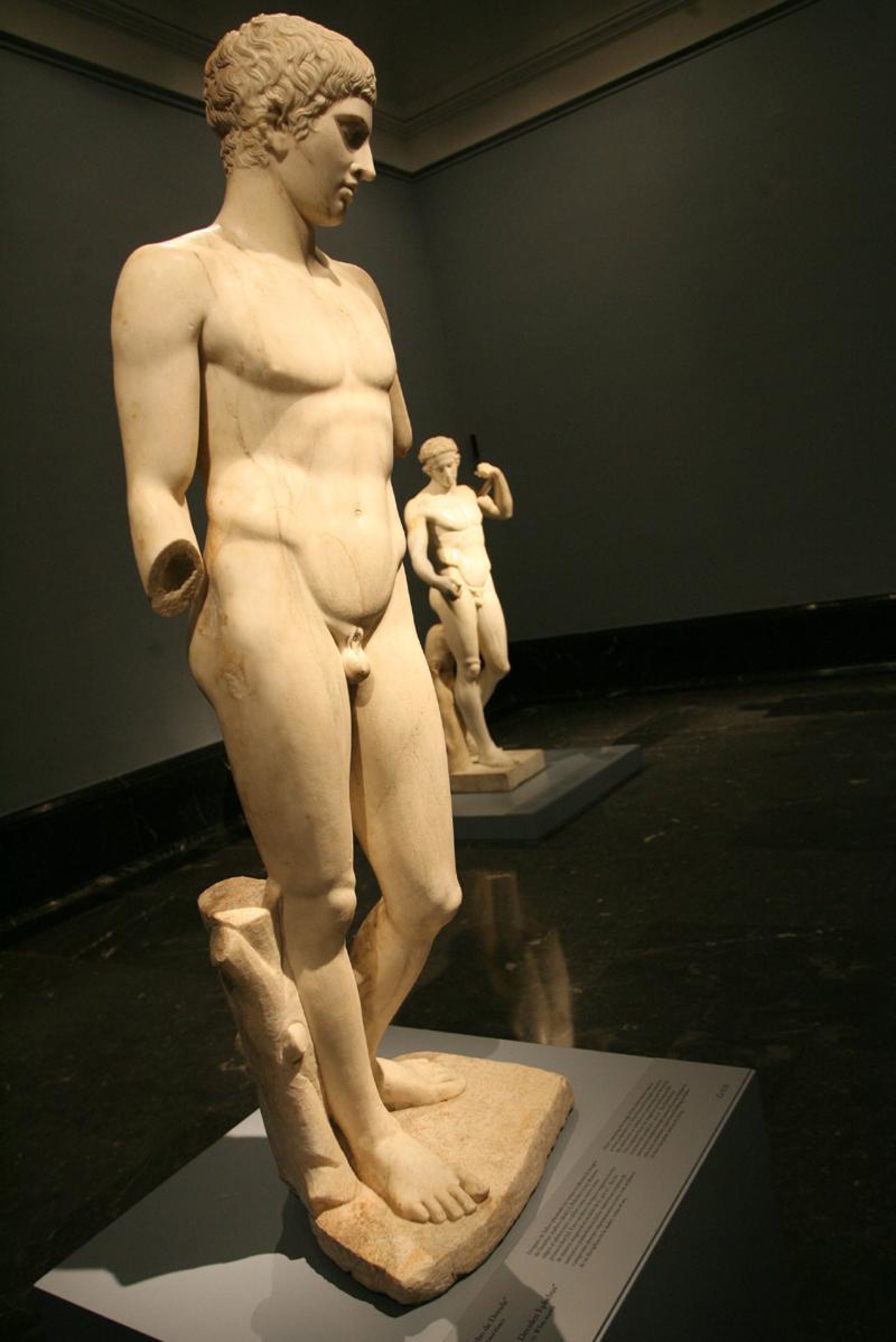 Entre las piezas más valiosas de esta muestra, destacan el Efebo de Dresde, réplicas romanas de la Atenea Lemnia de Fidias, del Sátiro escanciando vino de Praxíteles, la Ménade de Dresde y las dos Diosas de Herculano.