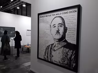 Una imagen de Franco acompañada de la frase 'Franco no fue tan malo como dicen' o una fotografía del Rey emérito Juan Carlos I son algunas de las obras más llamativas de una nueva edición de ARCO, que se celebra en Ifema del 26 de febrero al 1 de marzo y que rebaja la polémica de ediciones anteriores que contaron con obras como 'Presos políticos' o el 'Ninot' del Rey Felipe VI.