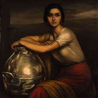 Julio Romero de Torres (1874-1930) pintó 'Fuensanta' pocos meses antes de su muerte en el otoño 1929, una época en la que trabajó sobre otras dos de sus obras más importantes, 'La Chiquita Piconera' y 'Bodegas Cruz Conde', que se utilizaron en carteles publicitarios. 'Fuensanta' recoge con intensidad toda la trayectoria profesional de este artista cordobés que centró su esfuerzo en retratar la mujer arquetípica andaluza.