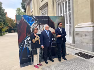 La comisaria de la muestra, Consuelo Varela, junto con el duque de Alba, Carlos Fitz-James Stuart y Martínez de Irujo, y el director cultural de la Fundación Casa de Alba, Álvaro Romero Sánchez-Arjona. - EUROPA PRESS