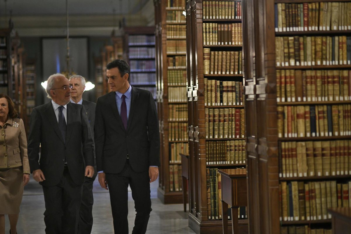 El director de la Real Academia Española, Santiago Muñoz Machado, acompaña al presidente del Gobierno, Pedro Sánchez, en su visita a la RAE. - Oscar del Pozo - Europa Press - Archivo