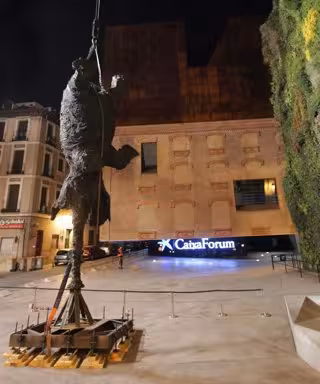 La escultura del elefante, que data de 2009, se ha instalado esta madrugada en la plaza pública de acceso a CaixaForum Madrid y se expone por primera vez. Es una invitación a adentrarse en el universo del pintor mallorquín.