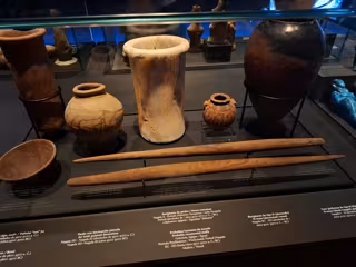 "Hay dos bastones predinásticos que estamos pendientes de darles probablemente todo su valor. No son astas de mazas. Seguro que no lo son porque están decoradas. Y la siguiente posibilidad es que realmente sean insignias de poder. Y sería realmente excepcional, de ponernos nerviosos", ha explicado el egiptólogo y profesor de la Universidad de La Laguna Miguel Ángel Molinero, comisario de la muestra junto a Andrea Rodríguez Valls.