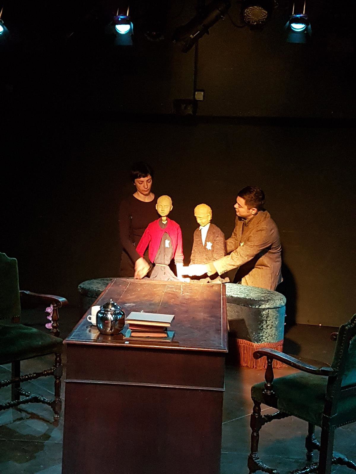 En la obra, ambientada en la Segunda Guerra Mundial, intervienen tres personajes: un delegado de Cruz Roja (Elena Rallos) al que se encarga inspeccionar un campo de concentración y al que se le presenta una mentira ideada por un comandante nazi (Raimon Molins) con la ayuda del jefe de la comunidad judía (Guillem Gefaell), que no sabe si está trabajando para la salvación de su pueblo o si está cooperando con los verdugos. En el escenario acompañarán a estos personajes una serie de muñecos.