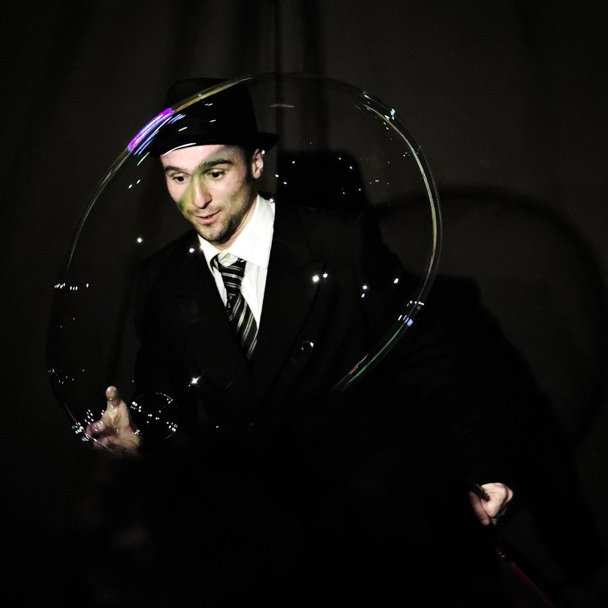 Una novedosa fórmula de espectáculo unipersonal presentada por primera vez en un teatro como late night show cargado de improvisación, culminado además con un número inédito de pompas de jabón gigantes. "La fórmula que nos permite realizar pompas de gran tamaño es fruto de dos años de investigación", reconoce Javier Urbina.