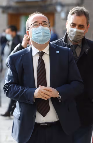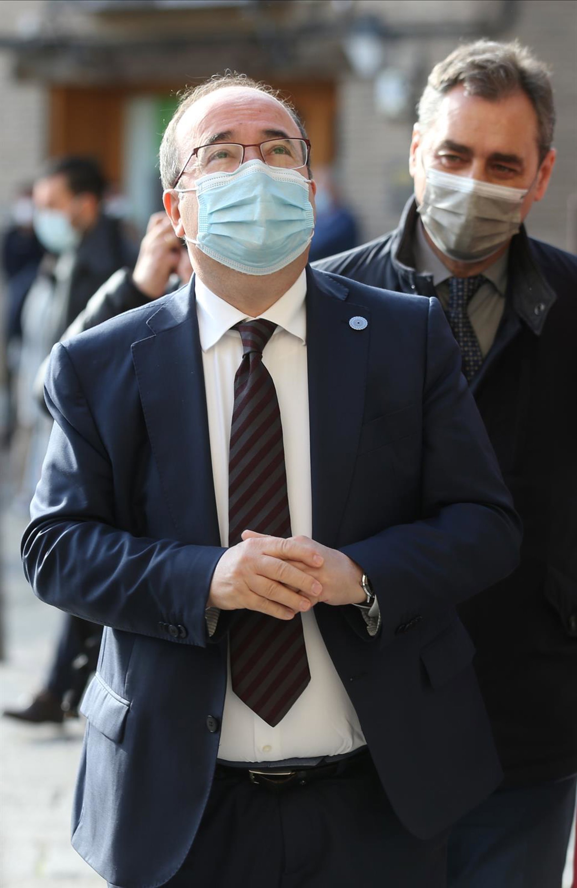 El ministro de Cultura y Deporte, Miquel Iceta (i), a su llegada a la primera reunión de la Mesa de la Moda de Autor española, en el Museo de Santa Cruz, a 22 de noviembre de 2021, en Toledo, Castilla-La Mancha, (España). - Isabel Infantes - Europa Press