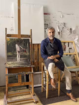 "La mía es una figuración no convencional. Quiero que parezca nueva, generar una atmósfera", ha declarado el pintor, que también confiesa que busca recuperar el papel de la pintura como medio protagonista en el arte.