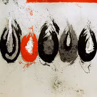 En el caso de la serie 'Máscaras schandemaske', el autor también crea esas manchas-gestos igual de intensos, pero esta vez contenidos en la única cuadrícula del cuadro, y es en 'Cabezas roschach' donde vuelva su contenido más expresionista.