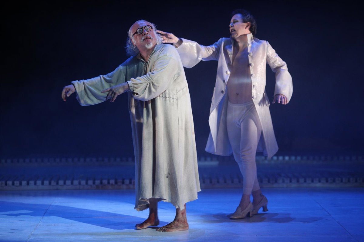 Echanove saldrá a las tablas totalmente vestido de blanco y con los anteojos tan reconocibles del creador del 'Buscón', lleno de llagas en los pies y con aspecto cansado, acompañado por un elenco de actores que representan desde el diablo o el Duque de Osuna hasta la envidia o el dinero.