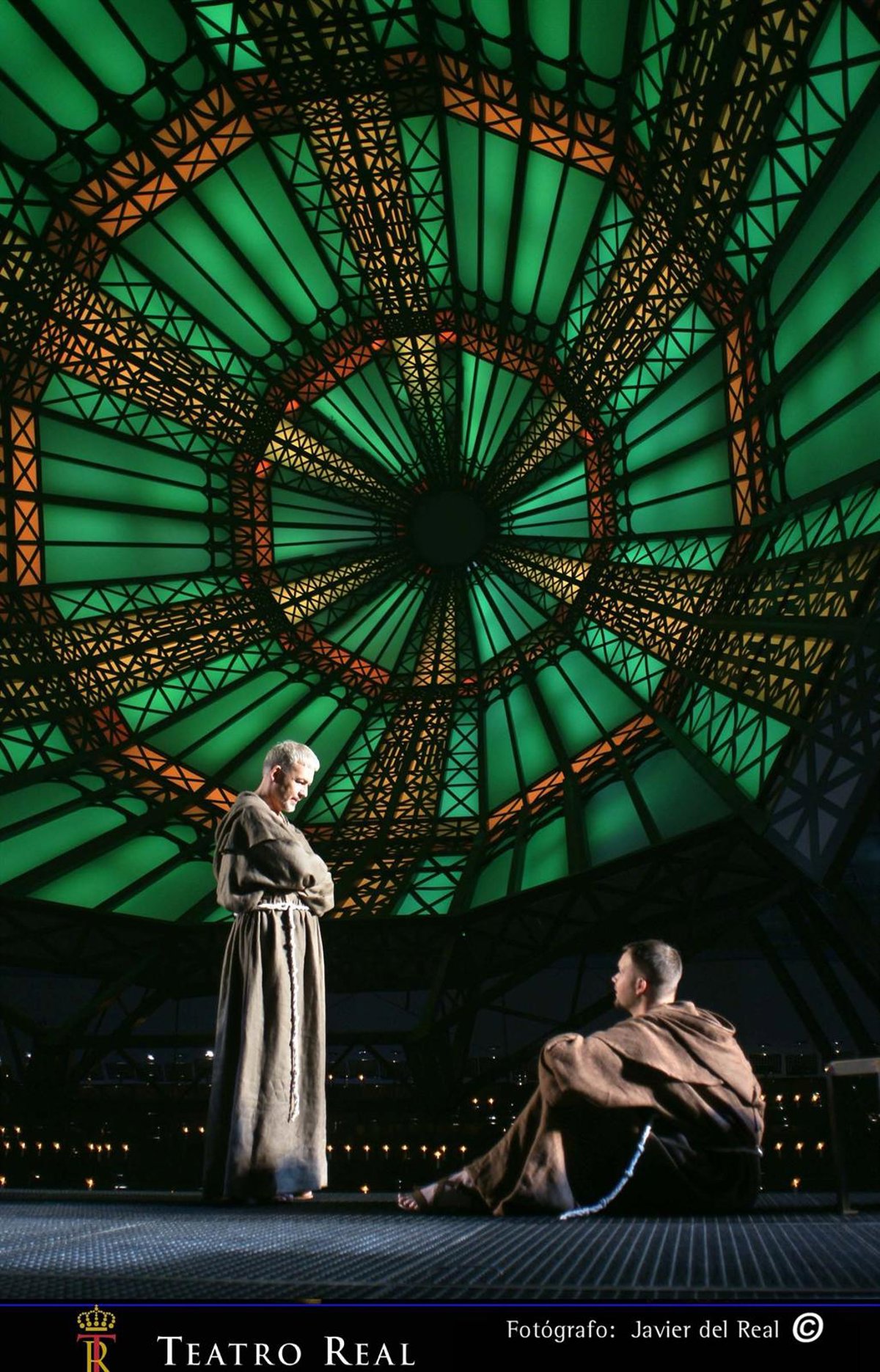 La producción que se verá en Madrid fue concebida por Emilia e Ilya Kabakov, y consta de una inmensa cúpula de 22 toneladas, 13 metros de diámetro, 14 metros de altura y con 1.400 fluorescentes, que cambiará de luz y color acompañando el camino de redención de San Francisco a lo largo de la ópera.