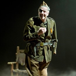 Adolfo Fernández da vida a Millán Astray en esta puesta en escena de K.Producciones que lleva ya 60 funciones por toda España y que ahora recala en este teatro madrileño del Centro Dramático Nacional, año y medio después de haber obtenido el Premio al mejor espectáculo en la Mostra Internacional de Teatro de Ribadavia.