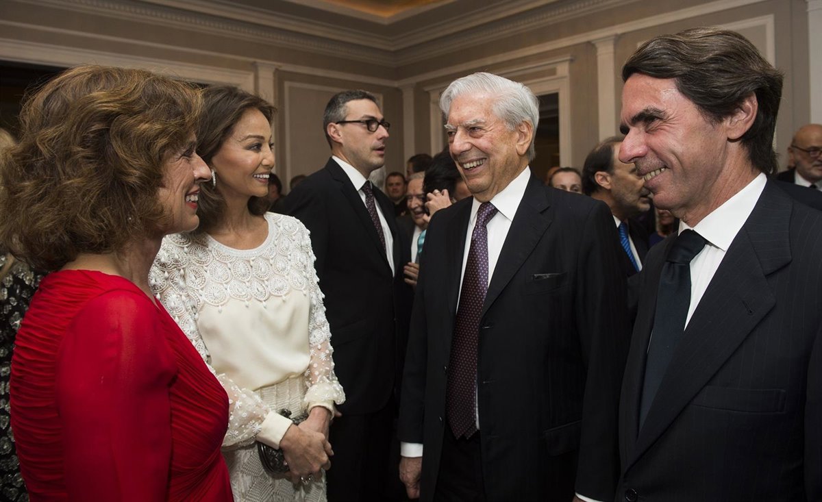 Figuras destacadas del mundo de la política y la cultura se han reunido este lunes, 28 de marzo, en el Hotel Villa Magna de Madrid para celebrar el 80 cumpleaños del Nobel de Literatura Mario Vargas Llosa quién, al término del encuentro aseguró estar "inmensamente agradecido con todos los presentes".