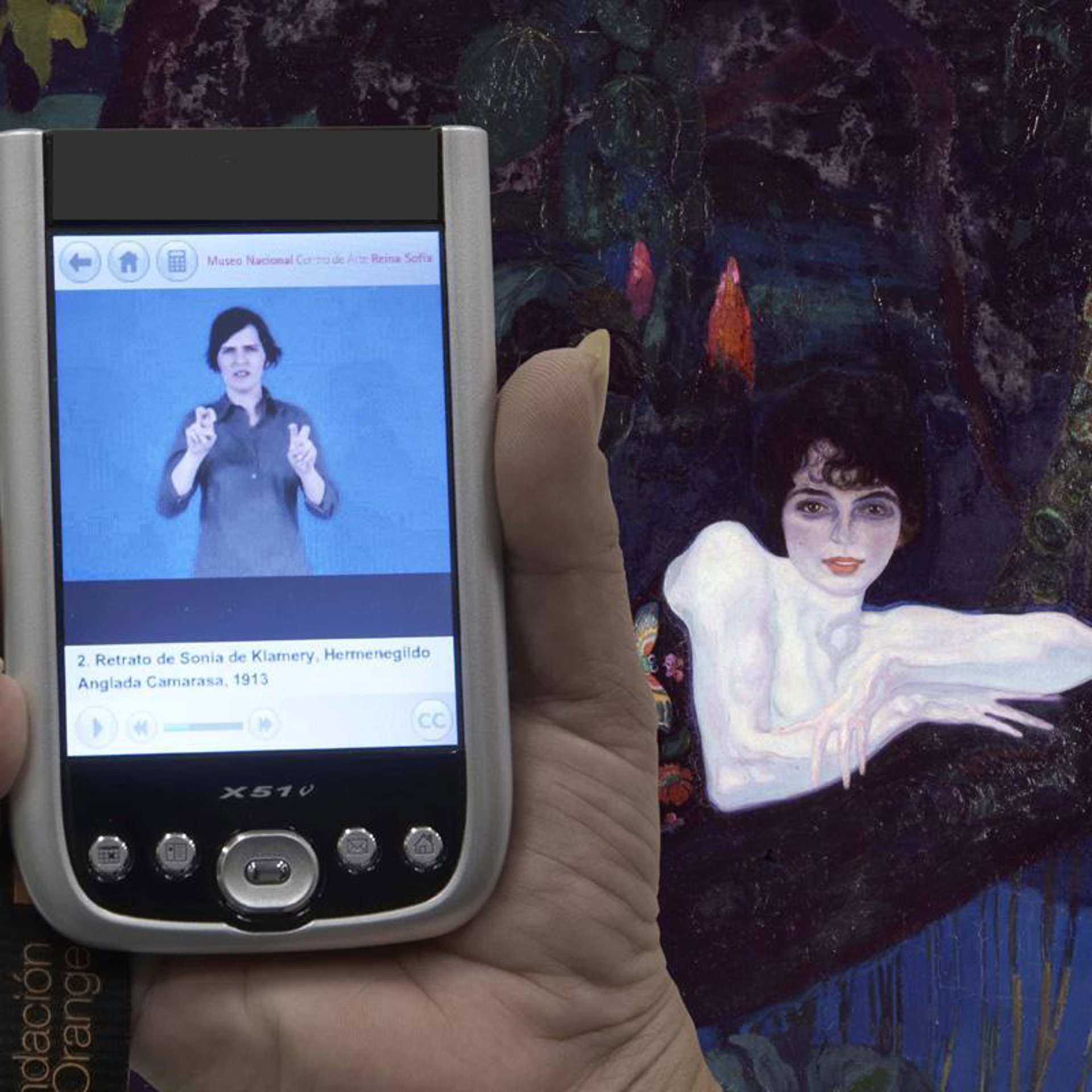 El Museo Reina Sofía cuenta ya con un servicio gratuito de seis 'Signoguías', que permitirá la accesibilidad de las personas sordas o con deficiciencias a los contenidos del Museo. Esta iniciativa, pionera en los museos de titularidad pública, funciona a través de un dispositivo PDA en el que se han incorporado vídeos con grabaciones en Lengua de Signos Española (LSE) y subtítulos con explicaciones de varias de las obras más importantes de la Colección Permanente del Museo como 'El Guernica' de Piccaso, 'El gran masturbador' de Dalí o 'La Tertulia del Café de Pombo' de Gutierrrez Solana.
