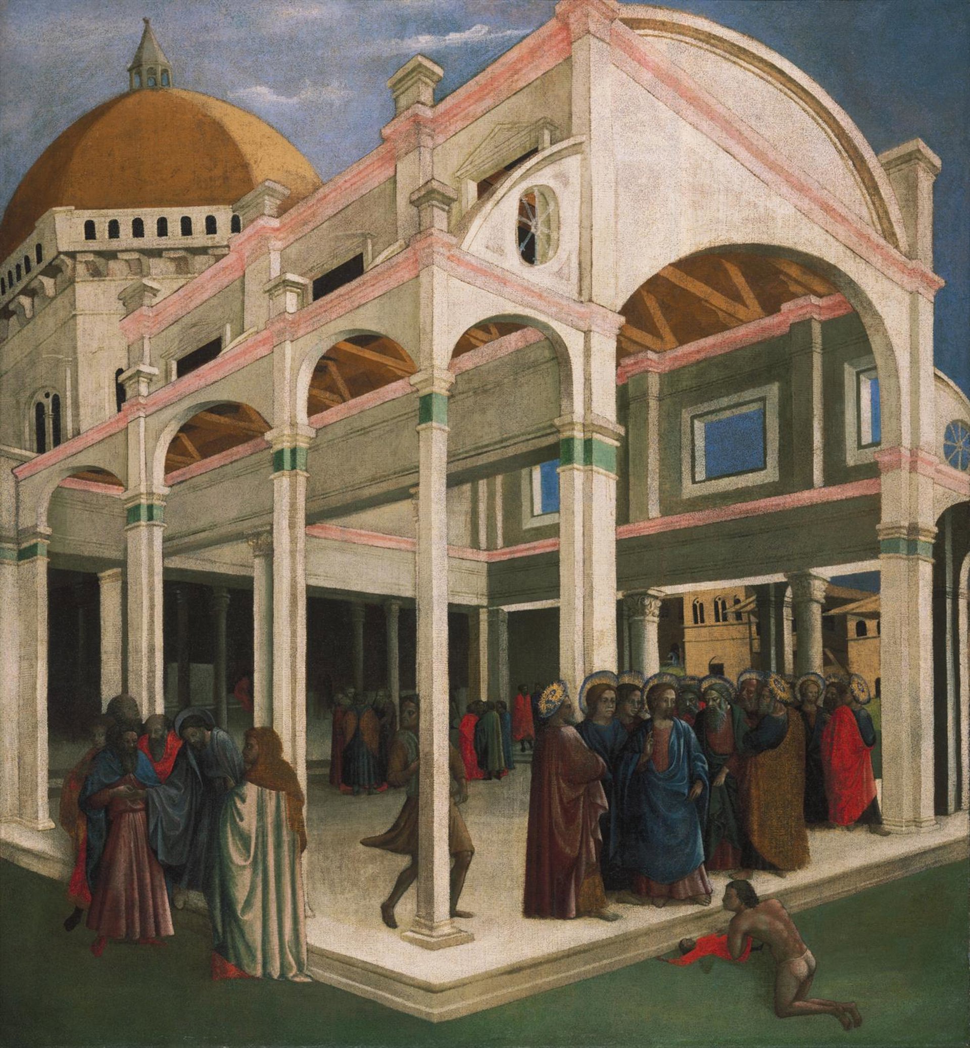 La exposición, comisariada por Delfín Rodríguez, catedrático de Historia del Arte de la Universidad Complutense de Madrid, y Mar Borobia, jefa de conservación de Pintura Antigua del Museo Thyssen-Bornemisza, cuenta con obras de muchos de estos prestigiosos artistas: Duccio di Buoninsegna, Canaletto, Giovanni Paolo Panini, Tintoretto, Gaspar van Wittel, Hubert Robert, Maerten van Heemskerck o Hans Vredeman de Vries, entre otros.
