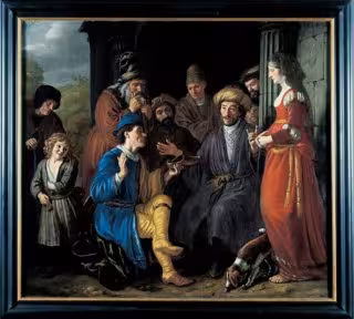 La obra 'Booz recibe la herencia de Elimelec', de Jan Victors, que forma parte de la muestra La Edad de Oro de la pintura holandesa y flamenca del Städel Museum que se expone actualmente en el Museo Guggenheim Bilbao, ha resultado dañada intencionadamente este viernes por un visitante, un estudiante de Bellas Artes.
