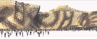 En China se le conoce popularmente como el 'Pabellón cesto', tanto por el mimbre que lo reviste como por lo sinuoso de su fachada, ésta es la imagen exterior que presenta el Pabellón español en la Expo Shanghai 2010, que abrirá sus puertas el próximo 1 de mayo.