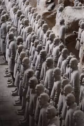 El yacimiento de los Guerreros, declarado Patrimonio de la Humanidad por la UNESCO en 1987, forma parte del mausoleo funerario de Qinshihuang el primer emperador que unificó los territorios de China y fundó la dinastía Qin.