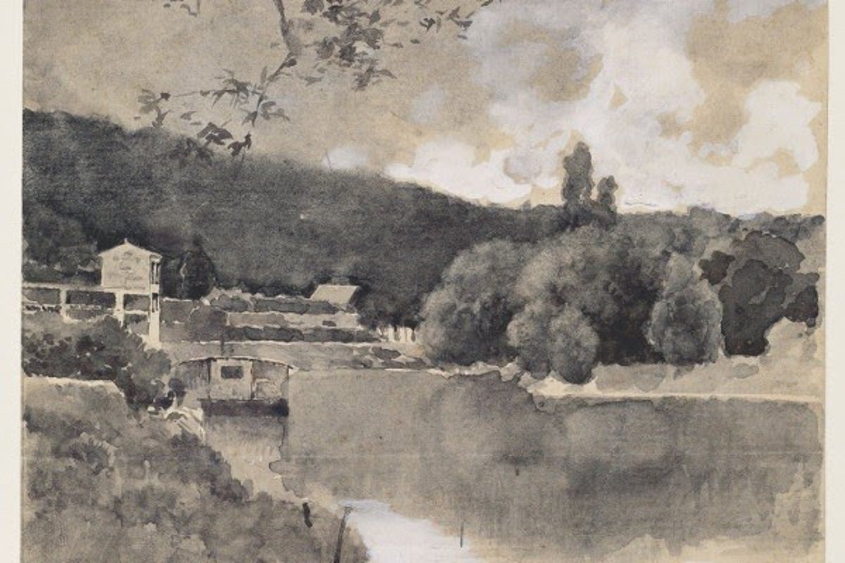 Detalle de 'Vista de un río a su paso por Pontoise, Francia'. Emilio Sánchez Perrier - MUSEO NACIONAL DEL PRADO