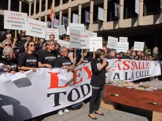 En esta concentración no ha faltado un ataúd de madera sobre el que se han depositado varios libros y películas y ante el cual se han leído varios comunicados de protesta, con los que han criticado el "empobrecimiento cultural" que traerá esta ley y la reducción de la "competitividad", "educación" y "contenidos" que traerá consigo. Detrás de este ataúd, una larga pancarta en la que se podía leer: "Ley Lassalle, todos a la calle".